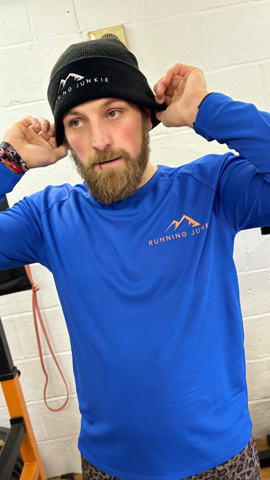 Men’s Active Running Long Sleeve Top Black with Blue Running Junkie LogoRegular price £26.99 GBPRegular priceUnit price / per-